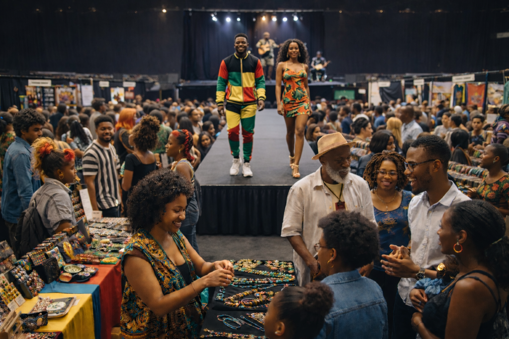 An integrated vendor ecosystem enabling diaspora entrepreneurs to showcase products, fashion, art, and services within live event environments. This marketplace model creates additional revenue streams, supports small businesses, and ensures economic circulation remains within the community.